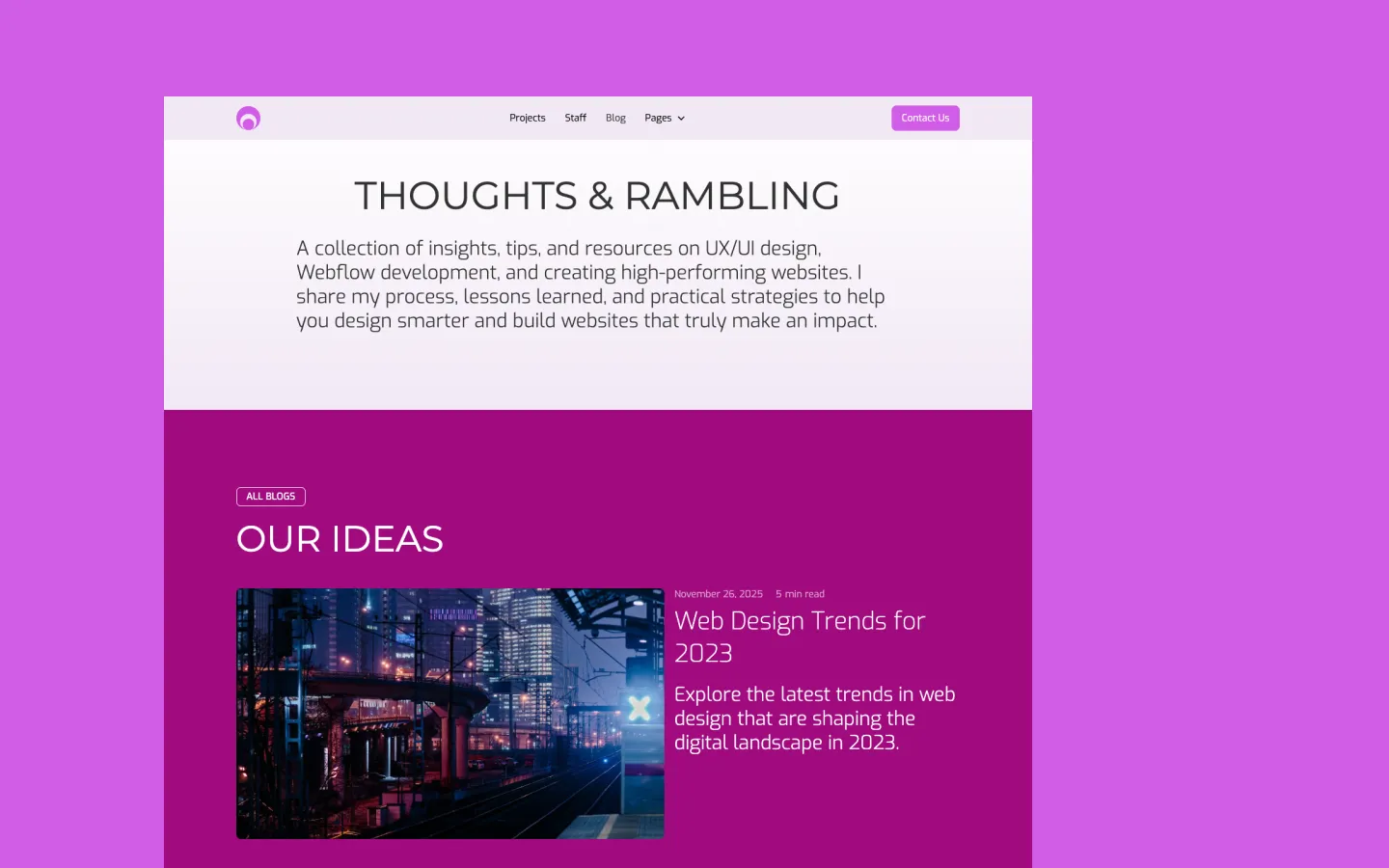 Discombobulate is a soft, bright modern Webflow template built for designers & creative agencies. Featuring smooth interactions, blog, gallery, and testimonials on a pink color scheme, it is easy on the eyes as it is for your future clients.